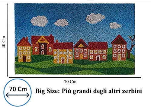 Baroni Home Zerbino Ingresso Casa in Cocco Dipinto a Mano 70x40 cm Facile da Pulire e Super Resistente, Villaggio