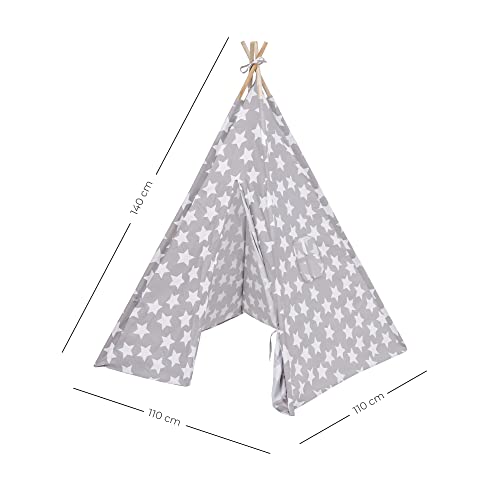 Baroni Toys Tenda Giocattolo per Bambini Grigia con Stelle, Tenda da Gioco Bambini 3+, Tenda Indiana per Bambini per Interni e Esterni