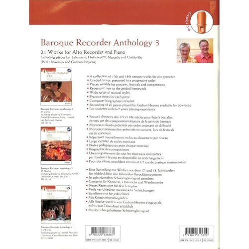 Registratore musica e note output/Score/Holzweißig: Baroque Anthology 3 - Arrangiamento per flauto dolce contralto - Pianoforte - con CD