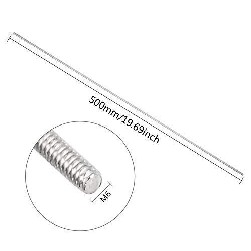 Barra Filettata in Acciaio Inox 304 2 Pz M6 Adatta per Fissaggio di Montaggio e Bulloni di Ancoraggio,Length 500mm