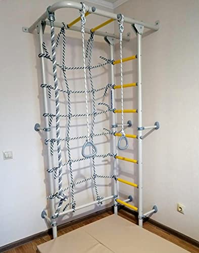 Barra da parete Comet Next 4 argento-giallo, montaggio a parete scala svedese, barrette scimmie, rete da arrampicata