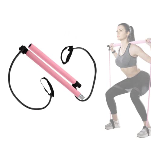 Barra per pilates per fasce di resistenza, bastone per pilates con anello per il piede, squat yoga esercizio fitness attrezzature per la forza muscolare, corde tonificanti hipsline (rosa)