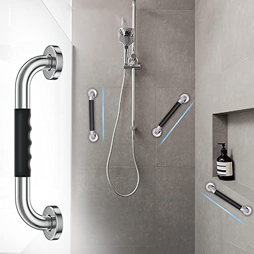 (Dimensioni della mano): la maniglia della doccia in acciaio inossidabile è lunga 33,3 cm, con uno strato di gomma morbida antiscivolo da 16,5 cm al centro del bracciolo. Dotato di viti di montaggio e bulloni di ancoraggio per una facile installazione.