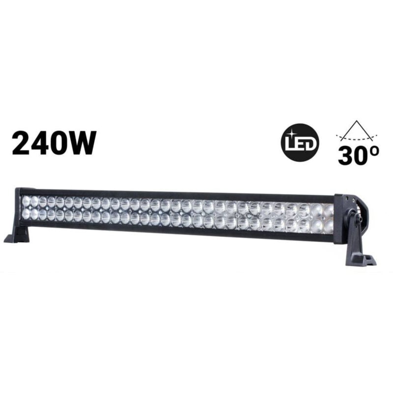 Proiettore a LED da 240W da utilizzare come proiettore anteriore o posteriore su tutti i tipi di veicoli (camion, barche, fuoristrada, veicoli industriali, trattori, ecc.) Alloggiamento in alluminio di alta qualità con finitura nera e staffe di montaggio regolabili. Grado di impermeabilità IP67 per resistere a qualsiasi condizione estrema. Fascio di proiezione per una migliore illuminazione, che copre l'angolo più ampio e con una buona illuminazione al centro. Angolo di chiusura di 30° con ampio intervallo di tensione (10-40V/DC). Intensità luminosa di 16.000 lumen e temperatura di colore fredda di 6000°K.