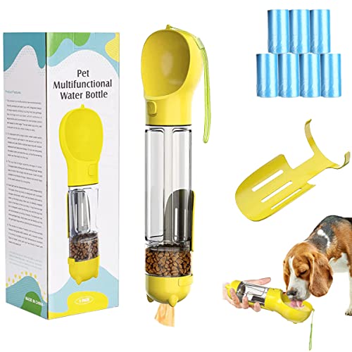 Barrageon Cane Borraccia Animale Domestico Bottiglia di Cibo 500ML Dispenser Viaggio Portatile Alimenti Contenitore Pala Spazzatura 7 Rotoli x 350 Sacchetti di Cacca (Giallo)