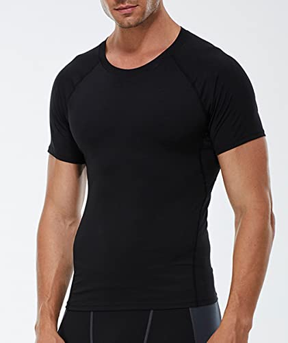 Barrageon Maglietta Compressione Uomo Manica Corta 3 PCS Top Elastica Camicia Traspirante Asciugatura Veloce Esercizio Fitness Allenamento (A-Nero-XL-01)