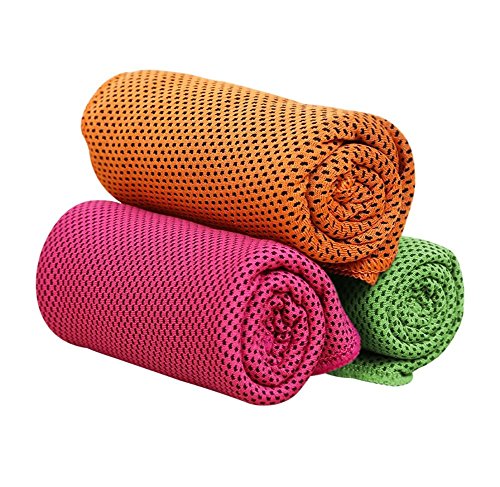 Barrageon 3 Pezzi Asciugamano Raffreddamento per Sollievo Immediato dal Calore Asciugamano Fresco per Sport 100 * 30 CM Uomo Donna Gioventù Bambini e Animali Domestici Verde/Rose/Arancione