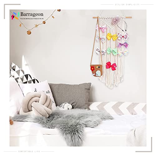 Barrageon Porta Fermagli per Fiocchi Capelli Tessuto a Mano Ragazze Nappe Fascia per Intrecciate Hair Bow Accessori Holder Immagazzinaggio Casa Attaccatura Boho Decorazione (Beige)