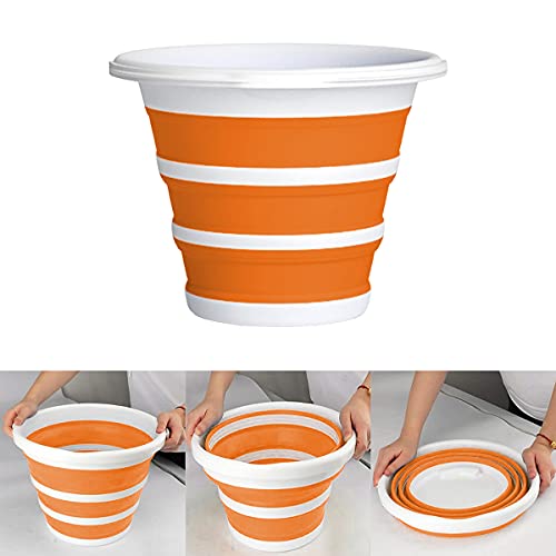 Barrageon Secchio Acqua Pieghevole 10L Bucket Portatile Silicone Collapsible Telescopico Secchiello Salvaspazio Domestico Cucina Pulizie Autolavaggio Viaggio Campeggio Pesca - Arancione
