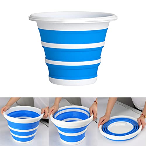 Barrageon Secchio Acqua Pieghevole 10L Bucket Portatile Silicone Collapsible Telescopico Secchiello Salvaspazio Domestico Cucina Pulizie Autolavaggio Viaggio Campeggio Pesca - Azzurro