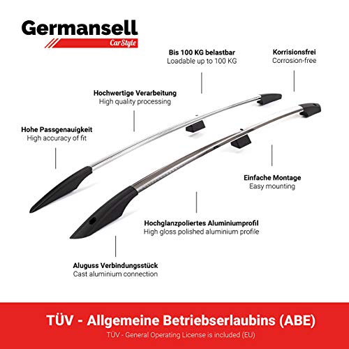 Sicuro ed efficace: registrazione TÜV, ABE, certificato di omologazione sono disponibili per le barre portapacchi, mancorrenti sul tetto. Le barre portapacchi sono utilizzabili come portapacchi.