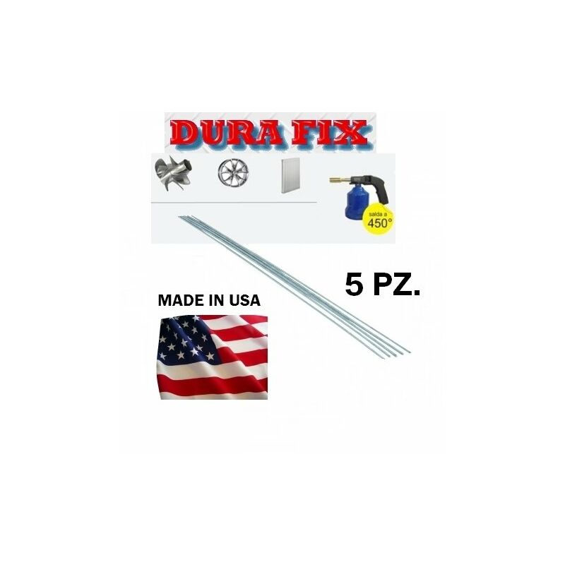 Verghette per la saldatura a basse temperature di tutti i tipi di alluminio, sue leghe, materiali a base di zinco, ottone, rame ed anche lamiere zincate senza l'utilizzo di una saldatrice. Un prodotto innovativo made in USA, per saldature perfette con un semplice cannello a gas. Non sprigiona fumi tossici, realizza lavori finiti ad altissima resistenza. Resistente pi� dell'alluminio. Ripara e salda serbatoi, termosifoni, pentole, parti marine, eliche, infissi ecc ecc... L'offerta comprende 5 Verghette. Caratteristiche Tecniche - Resistenza al taglio (Kg/sq): 2390,20 - Durezza /Brinell): 100 - Punto di fusione: circa 400ᄚ - Densit� (gr/cm3): 6,92 - Allungamento (in 5 cm): 3% - Coefficiente in espansione lineare: 15,4*10-6Fᄚ - Conduttivit� elettrica: 24,9% Rame - Conducibilit� termica (cal/cu.cm/�C): 0,24 - Lunghezza (mm): 450 - Diametro (mm): 2 Questa verghetta fonde intorno ai 400� ed il materiale da saldare puòessere riscaldato con bruciatori aria/propano, acetilene, metano. Se la