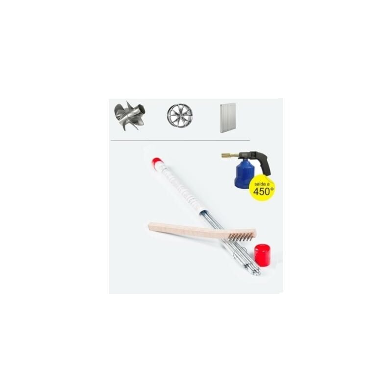 Verghette per la saldatura a basse temperature di tutti i tipi di alluminio, sue leghe, materiali a base di zinco, ottone, rame ed anche lamiere zincate senza l'utilizzo di una saldatrice. Un prodotto innovativo made in USA, per saldature perfette con un semplice cannello a gas. Non sprigiona fumi tossici, realizza lavori finiti ad altissima resistenza. Resistente pi� dell'alluminio. Ripara e salda serbatoi, termosifoni, pentole, parti marine, eliche, infissi ecc ecc... Il kit � composto da 20 Verghette pi� una spazzola con setole in acciaio inox. Caratteristiche Tecniche - Resistenza al taglio (Kg/sq): 2390,20 - Durezza /Brinell): 100 - Punto di fusione: circa 400ᄚ - Densit� (gr/cm3): 6,92 - Allungamento (in 5 cm): 3% - Coefficiente in espansione lineare: 15,4*10-6Fᄚ - Conduttivit� elettrica: 24,9% Rame - Conducibilit� termica (cal/cu.cm/�C): 0,24 - Lunghezza (mm): 450 - Diametro (mm): 2 Questa verghetta fonde intorno ai 400� ed il materiale da saldare puòessere riscaldato con