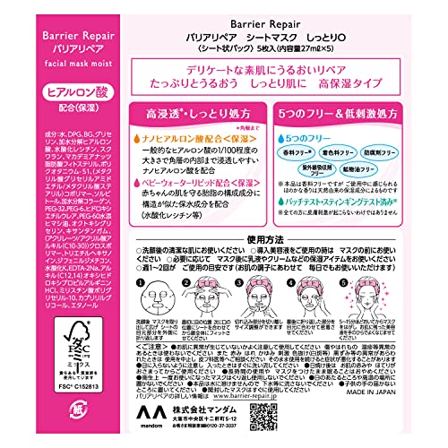 Barrier Repair Sheet Mask (acido ialuronico) Puru Super Moist Type 5 Sheets