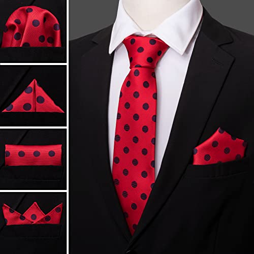 Barry.Wang Cravatta Set Pois Uomo Cravatta Seta Tessuto Tasca Quadrato Gemelli Business Wedding, Rosso, Taglia unica