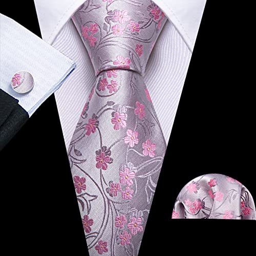 Barry.Wang, elegante set di cravatta, gemelli e pochette da uomo, motivo floreale, materiale: seta Grey Taglia unica