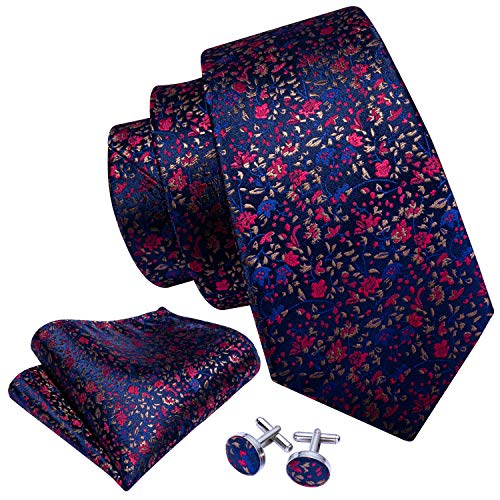 Barry.Wang Uomo Legami Fiore Nozze Festa cravatta Set Hanky Cuflflinks Taglia unica Blu Rosso-5008