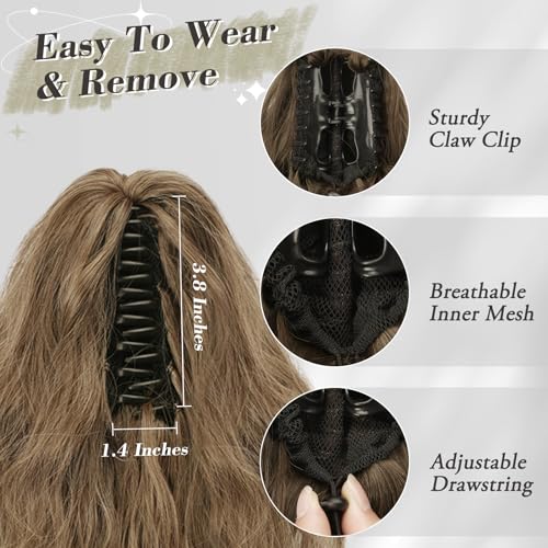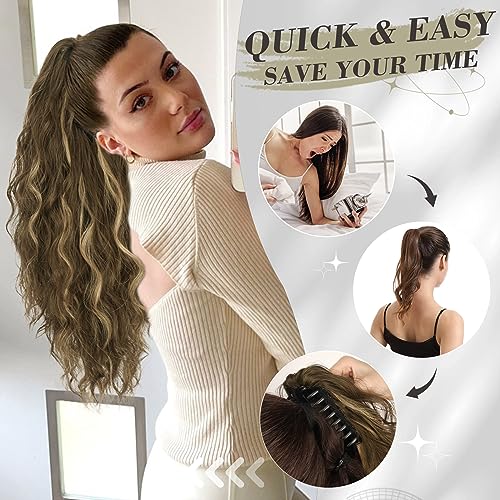 BARSDAR Artiglio Clip Coda Cavallo Extension, 45CM Lungo Ondulati Clip Marrone Coda di Cavallo Coda Capelli Extension Sintetica Ricci Posticci Coda di Cavallo per Donne(Cenere Marrone/Bionda Misto)