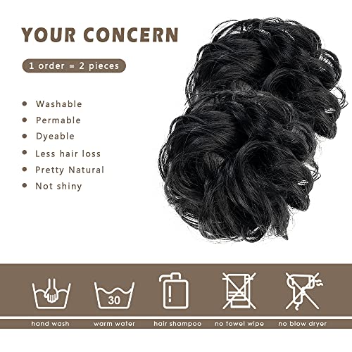 BARSDAR 100% Umani Chignon Capelli Veri 2 PCS, Coda Chignon Extension Elastico con Capelli Chignon Capelli Ricci Mossi Capelli Chignon da Donna