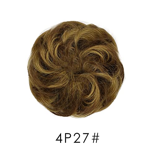 BARSDAR 100% Umani Chignon Capelli Veri, Coda Chignon Extension Elastico con Capelli Chignon Capelli Ricci Mossi Capelli Chignon da Donna (Mix Castano Biondo)