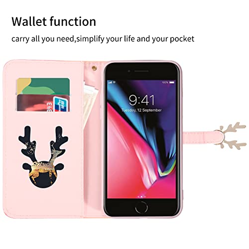 Custodia iPhone 7/8/SE 2020 Portafoglio--Ci sono 2 slot per carte e 1 borsa per contanti. Puoi portare con te tutti i tipi di carte di credito e contanti,Viene fornito con una cinghia da polso, il che è molto comodo.