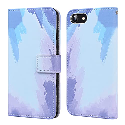 Bartern Cover iPhone 7/8/SE 2020/SE 2022,Gradiente Acquerello Custodie con Funzione Staffa,PU Pelle Flip Folio Case con Slot per Schede e Chiusura Magnetica per iPhone 7/8/SE2020,Blu Bianco