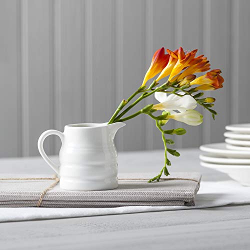 Una brocca in ceramica bianca di alta qualità. Ideale per servire latte, panna, crema pasticcera, sugo e molto altro ancora. Per colazione, dessert, tè o tè alto in giardino e bevande.