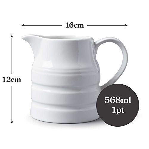 Brocca in porcellana bianca di alta qualità. Ideale per servire latte, panna, crema pasticcera, sugo, acqua e succo d'arancia. Per colazioni, dessert, tè o tè in giardino e bevande
