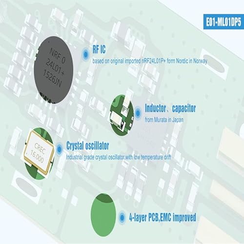 Introduzione: le prestazioni RF di E01-ML01DP5 e la selezione dei componenti durante la ricerca e lo sviluppo sono tutte conformi agli standard di grado industriale, utilizzando oscillatore di cristallo da 1 6 MHz ad alta precisione, inoltre ha ottenuto FCC, CE, RoHS certificazione. Sono integrati un amplificatore di potenza (PA) e un amplificatore a basso rumore (LNA), in modo che la potenza massima di trasmissione raggiunga i 100 mW e la sensibilità di ricezione sia ulteriormente migliorata. I prodotti sono stati notevolmente migliorati quando non c'è PA e LNA nel design.