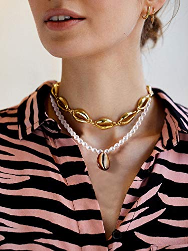 Bascolor 2 Pezzi Collana Conchiglia Choker Conchiglie e Collana Girocollo Perle Elegante Regolabile Conchiglia Perle Collana Ciondolo Pendente Boho Gioielli Set Collana Girocollo per Donna Ragazza