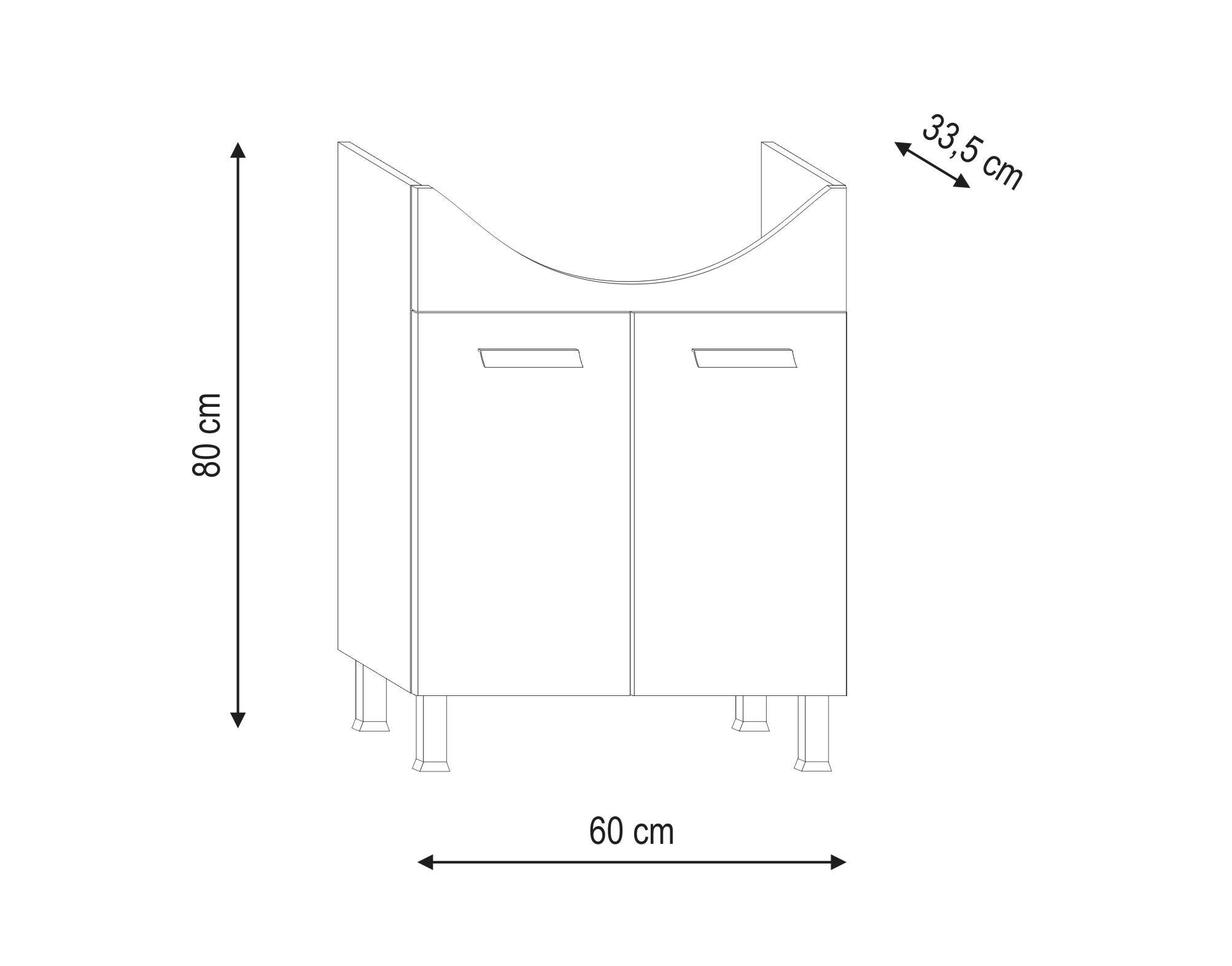 Base portalavabo Rimini 2 ante larice da L.60 H.80 P.33,5 cm