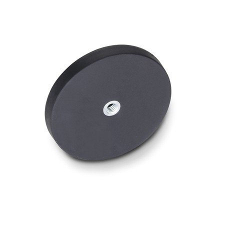 Base Magnetiche in Neodimio Ø 22 mm - Ø 88 mm gommato con 1x filettatura interna, Grandezza:Ø 66mm | M6 | Forza 25kg