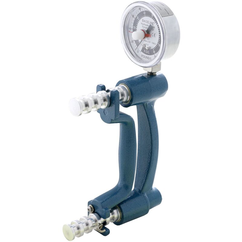 Questo dinamometro idraulico per la misurazione della forza delle mani della BASELINE è uno strumento molto apprezzato dai terapisti in tutto il mondo. Può essere misurata la forza fino a 90.7kg. Il display del dinamometro ha un diametro di 6,35cm (indicatore). Impugnatura regolabile a 5 scatti per un adattamento personalizzato.