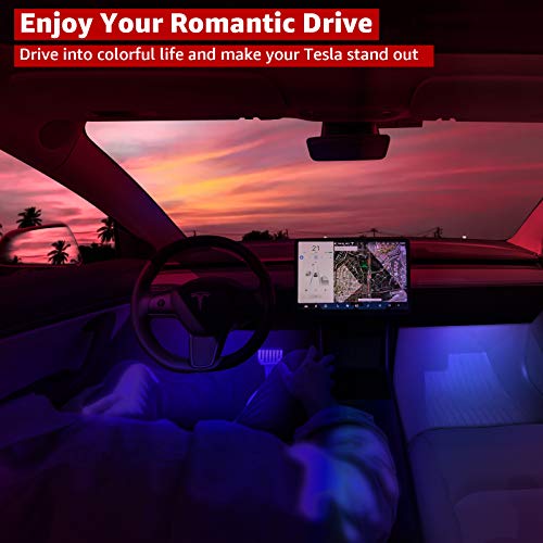BASENOR 2022 2021 Tesla Model Y Luci vano piedi anteriori e posteriori Luce al neon interna Luci di striscia LED RGB con controller App