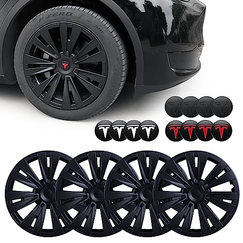 BASENOR 2023-2020 4PCS Copriruota Tesla Model Y Coprimozzo da 19 pollici Coprimozzo ruota nero opaco Protezioni per cerchioni OEM Coperchio di ricambio