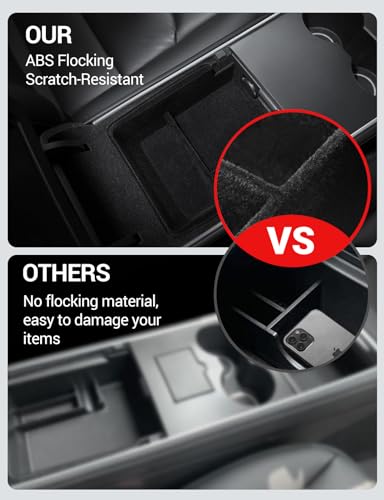 Materiali premium, alta qualità: il contenitore e il vassoio della console centrale BASENOR Tesla Model 3 Model Y sono realizzati con guscio in plastica ABS, materiale floccato resistente e durevole, antiscivolo, ecologico e insapore.