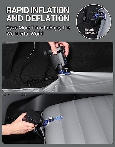 Facile da usare: il materasso è dotato di una pompa elettrica a ricarica elettrica per auto per un rapido gonfiaggio e sgonfiaggio, garantendo un'esperienza senza problemi.