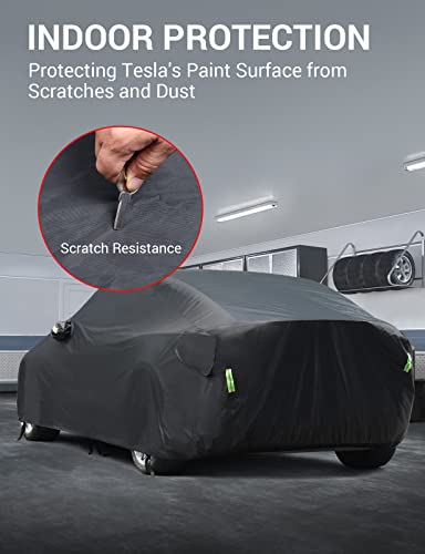 Armatura per tutte le stagioni: difendi la tua Tesla Model 3 dagli elementi con le coperture per auto da esterno BASENOR Model 3, che forniscono una protezione senza pari da raggi ultravioletti, polvere, sabbia, neve, gelo ed escrementi di uccelli in ogni stagione, offrendo al contempo la migliore della categoria resistenza all'acqua.