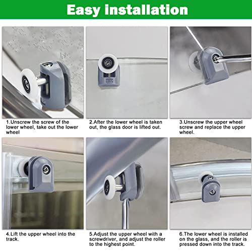 ✿【Installazione semplice】: questo rullo per porta della doccia è molto facile da installare. Abbiamo incluso una vite e un dado. Hai solo bisogno di allineare i rulli con i fori di montaggio del vetro e utilizzare un cacciavite per serrare le viti. Il dado incluso protegge la vite dall'umidità e riduce la ruggine.