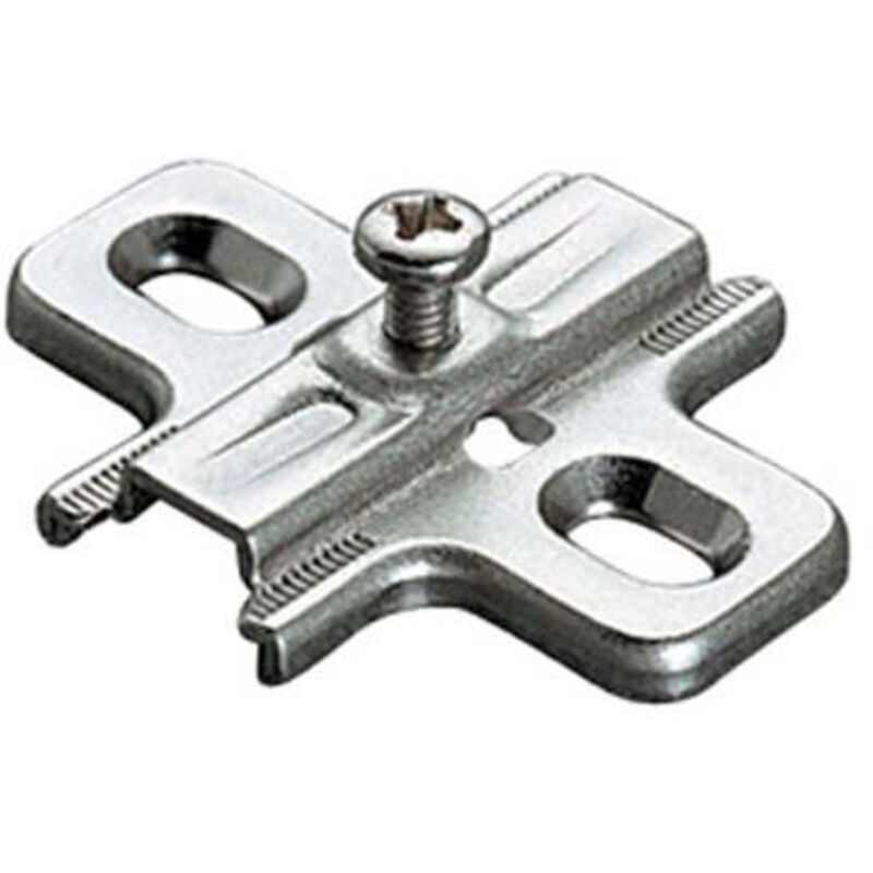 In acciaio nichelato. Base simmetrica a croce. Per cerniere Serie 100, 200, 400, 600, 800, 900 F, B, M e Silentia. Regolazione v