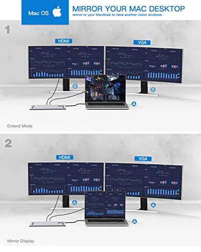 Baseus Docking station USB tipo C 10 in 1, hub C per MacBook Pro, docking station MacBook USB C, hub C in alluminio con Gigabit Ethernet, HDMI, VGA, porta microfono audio, lettore di schede SD/TF