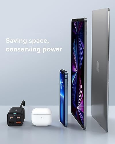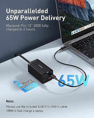 Baseus Caricatore USB C rapido 65W, PD GaN3 Fast Wall Charger, 4 Porte [2USB-C+2USB] Stazione di Ricarica con Cavo 1,5m AC per MacBook Pro/Air, USB-C Laptop, iPhone 14/13/12, Samsung Galaxy S23/S22