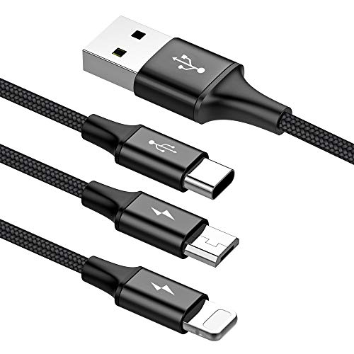 Baseus Cavo Multi USB, 3 in 1 4FT/1.2M 3A Fulmine/Micro USB/USB Tipo C Nylon Intrecciato per Nexus 6P 5X/Google Pixel/Samsung Galaxy S8 Plus/Huawei/Honor/Xiaomi/LG