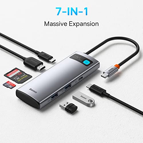 Baseus Hub USB C HDMI 4K 7 in 1 Adattatore USB C con HDMI 4K, 100W PD, USB-C e 2 USB 3.0 porte dati 5 Gbps, Lettore di schede SD/TF per MacBook Pro/Air, iPad Pro, Surface Pro 7, XPS 13, ecc