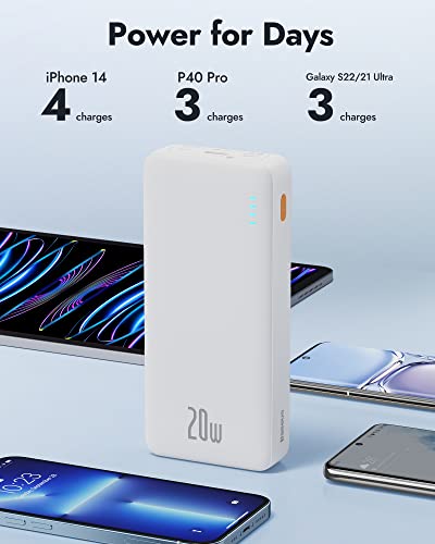 Capacità della batteria da 20000 mAh: con grande capacità, questa Baseus Powerbank da 20000 mAh può fornire 4 cariche per iPhone 12, 3 ricariche per Samsung Galaxy S21/S22 e 3 cariche per Huawei P40 Pro. La power bank USB-C di grande capacità e un indicatore LED mostrano la potenza rimanente e lo stato di carica.