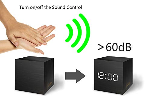 Bashley Sveglia in Legno Digitale LED Minimalista Mini Cube con Data e Temperatura Sound Control Sveglia da Tavolo per Viaggi, cameretta, casa, Ufficio- Nero