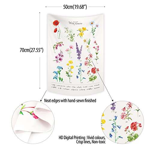 BASHOM TP-002 Arazzo colorato di fiori selvatici Poster Grafico di riferimento Appeso a parete per camera da letto Soggiorno Cottagecore Decor Home Decor 20''x27.5''(50x70cm)