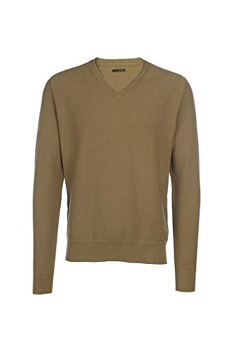 MY BASIC Maglia Uomo in Cotone - Punto Riso con Collo a V. (L, Safari)