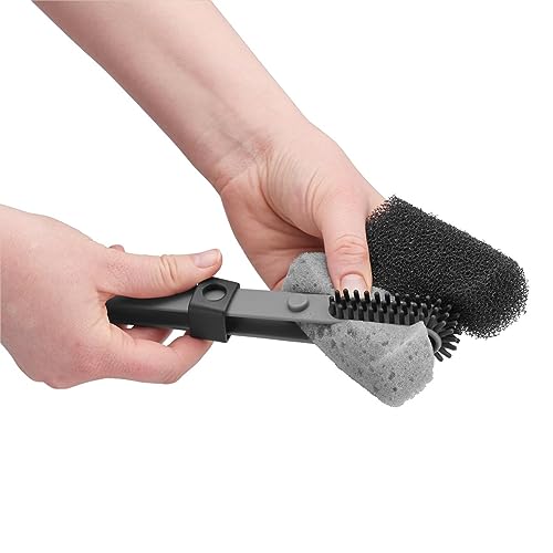 3 volte di pulizia per rimuovere facilmente lo sporco: morbidi gommini in plastica per bordi taglienti, spugna grossolana per rivestimenti, spugna fine per il lavaggio