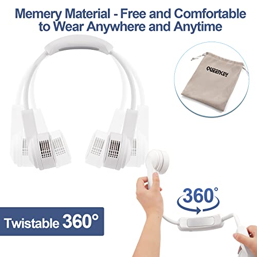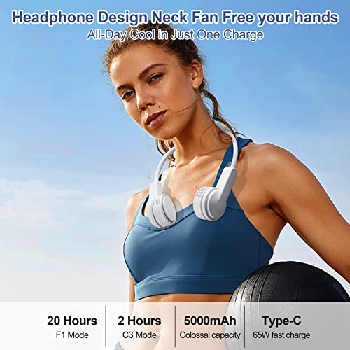 BASICF Ventilatore da collo portatile con 5000 mAh di lunga durata, rotazione a 360° USB, per viaggi, sport, interni, esterni